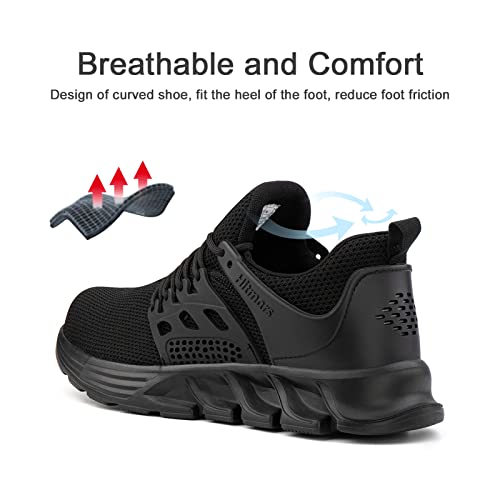 Hitmars Sicherheitsschuhe Herren Arbeitsschuhe Stahlkappenschuhe Damen Bequeme Leichte Kochschuhe rutschfest Männer Arbeit Schuhe Sportlich Safety Shoes Schwarz EU 44