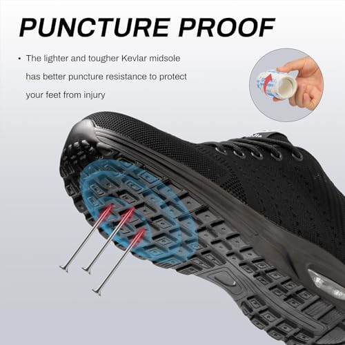 Hitopteu Sicherheitsschuhe Herren Arbeitsschuhe Damen Leicht Sportlich Arbeitsturnschuhe mit Stahlkappe rutschfest Atmungsaktiv Schwarz 38 EU 240