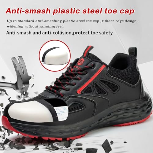 ISOOUS Arbeitsschuhe Herren Sicherheitsschuhe Damen Leicht Kunststoffkappe Atmungsaktiv rutschfest Sneaker Küche Sportlich Schwarz Rot EU 44