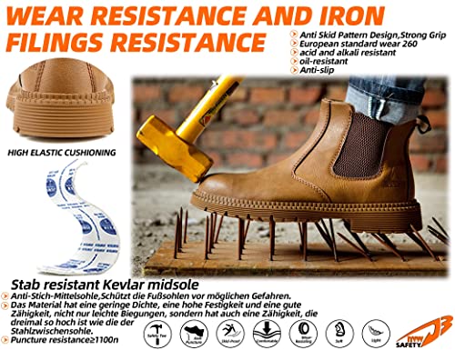 IYVW Safety 815 Herren Damen Stahlkappe Sandalen Wildleder Leder Arbeitsschuhe Sommer Schutzschuhe Used for Industrie Baugewerbe Braun 36 EU