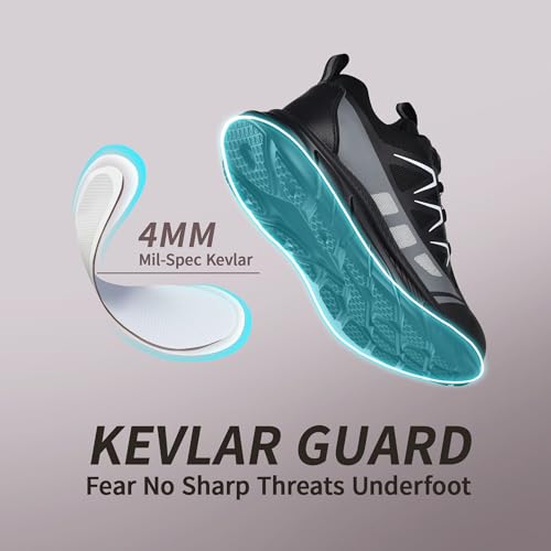 JACKSHIBO Sicherheitsschuhe mit Stahlkappe für Herren und Damen, leicht, pannensicher, rutschfeste Arbeitsschuhe, Schwarz , 42 1/3 EU