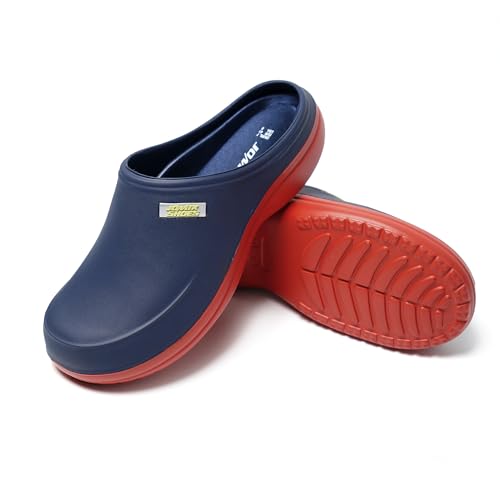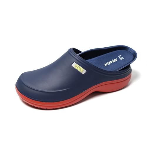JOMIX Clogs Herren Pantoletten Sommer Gartenschuhe Leichte Medizinische Arbeitsschuhe kochschuhe rutschfest Gummi Gartenclogs Elegant Sanitär Hausschuhe Leichte Eva Slipper (Navy, 43 EU)