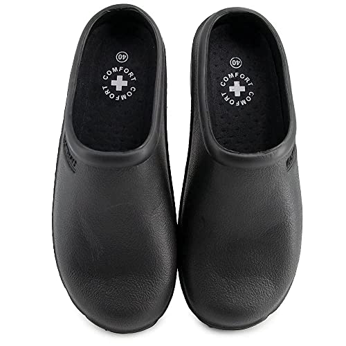 JOMIX Damen Clogs Pantoletten Gartenschuhe Leichte Medizinische Atmungsaktiv Arbeitsschuhe kochschuhe rutschfest Gummi Gartenclogs (Schwarz,39)