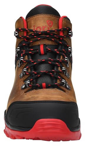 JORI Sicherheitsschuhe jo_Powerful Brown Mid S3S, Damen und Herren, Leder, Stahlkappe, leicht, klassisch 42, Braun-Rot-Schwarz
