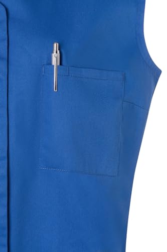 Der KARLOWSKY Ärmelloser Damenkasack Essential verbindet Stil und Verantwortungsbewusstsein: Er bietet eine klare, unkomplizierte Silhouette und eignet sich ideal für den professionellen Arbeitsalltag in Küche, Labor oder Pflege – bequem, langlebig und pflegeleicht. Der Kasack schützt Ihre Arbeitskleidung vor Flecken und sorgt gleichzeitig für Bewegungsfreiheit beim Arbeiten. Dank des nachhaltigen Materials setzen Sie ein klares Zeichen für Umweltbewusstsein, ohne Komfort oder Funktionalität zu kompromittieren. Der KS 67 in königsblau fällt modern aus und lässt sich vielseitig kombinieren, sodass Sie im Schichtdienst oder bei Servicetätigkeiten stets einen zuverlässigen Begleiter tragen.