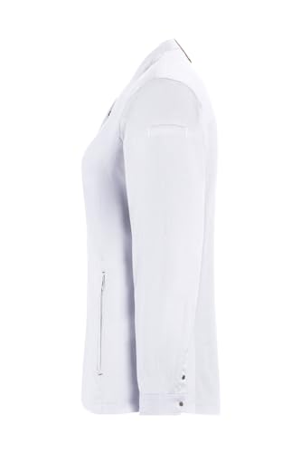 Nachhaltige Damen-Kochjacke mit Modern Fit, Druckknöpfen, Jersey-Rückenteil und praktischen Taschen. Weiß, Größe 34. Öko-Tex, GRUENER KNOPF.