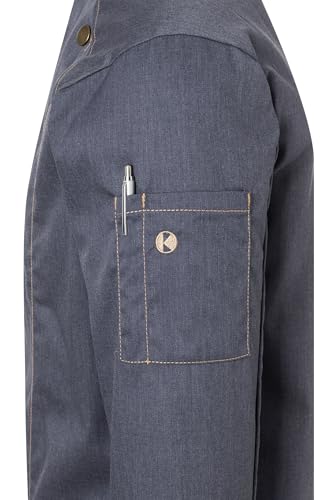 Karlowsky Jeans-Style Kochjacke Vintage Black, 65% Polyester/35% Baumwolle, 195 g/m², Größe 66. Schlanke Silhouette, kontraststepp, Druckknopf-Verschluss, industrietauglich.