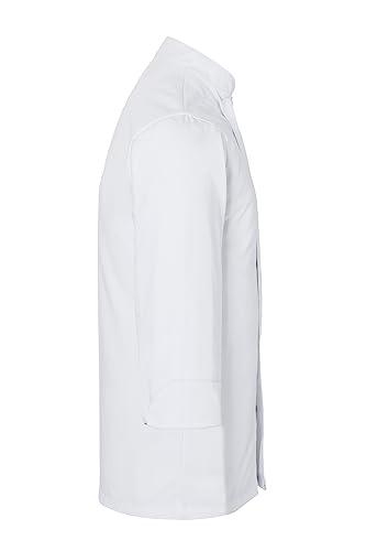 Kochjacke Basic Unisex von Karlowsky. 65% Polyester/35% Baumwolle, weiß, normaler Schnitt, Brusttasche links, Ärmelmanschetten mit Schlitz, 10-Knopf-Verschluss, Größe 2XL.