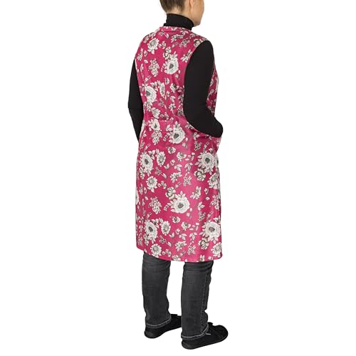 Kittelschürze bunt mit Knopfleiste, bequeme und abwaschbare Garten- und Haushalts Schürze mit Seitentaschen I Dederon Kostüm Kittel DDR Retro Style Gr. L