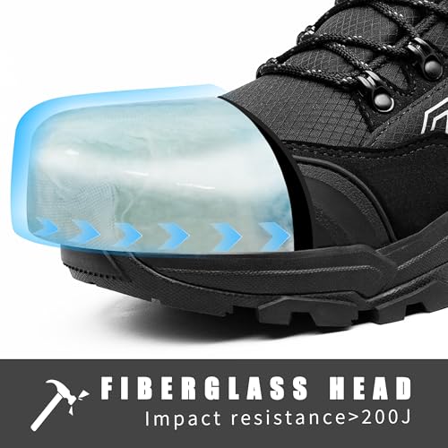 KOIFISH Arbeitsschuhe Herren Damen Wasserdicht Sicherheitsschuhe Hoch Leicht Sicherheitsstiefel Rutschfest Arbeitsstiefel Antistatisch S2506/Schwarz 43