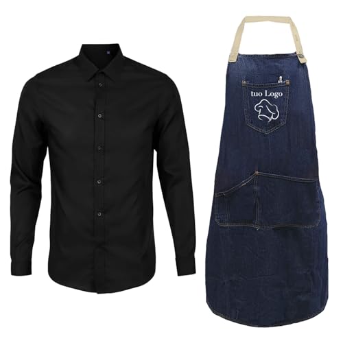 Komplettes Herren-Set für Kellner mit Jeansschürze und Hemd, erhältlich von Größe XS bis XXL, hergestellt in Italien