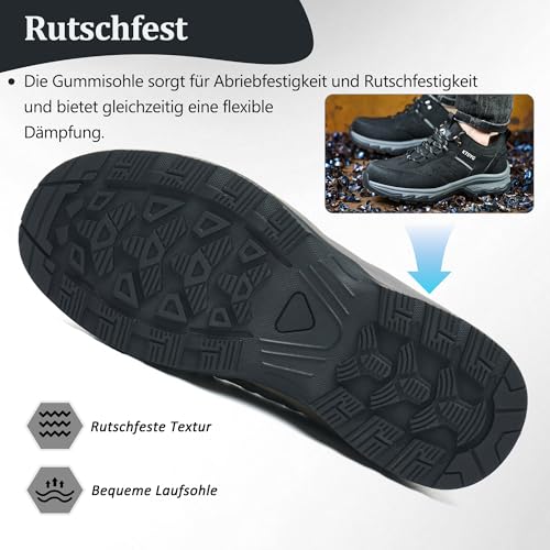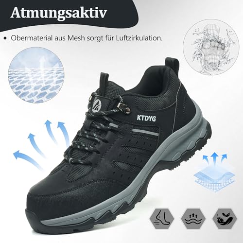 KTDYG Sicherheitsschuhe Arbeitsschuhe Herren Damen Leicht Sportlich Stahlkappenschuhe Atmungsaktiv rutschfest mit Stahlkappe, Schwarz, 46EU