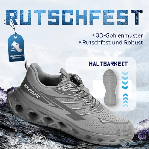 kxsafe Arbeitsschuhe Herren Leicht Sicherheitsschuhe Herren Sportlich Sicherheitsschuhe Damen Atmungsaktiv Stahlkappenschuhe Damen mit Drehschnalle rutschfest
