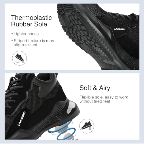 LAoutun Stahlkappenschuhe für Herren und Damen, Sicherheits-Arbeitsschuhe, unzerstörbar, Stahlkappe, Sneaker, leichte Arbeitsschuhe, Zehenschuhe, D2132n-schwarz, 43 EU