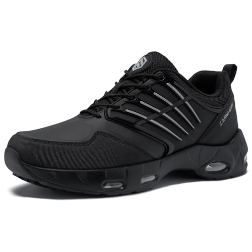 LARNMERN Doppelluftkissen-Dämpfung, antislip-Laufsohle und wasserdichte Bauweise: bequeme, sichere Arbeitsschuhe für Küche, Hotel & Gesundheitswesen.
