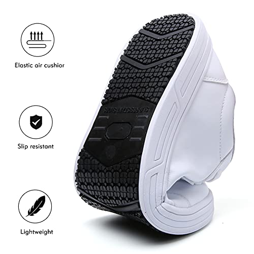 LMQLZHYC Rutschfeste Arbeitsschuhe für Herren und Damen, rutschfest, für Lebensmittelservice, Koch, Krankenpflege, Schuhe, Weiß, 11 US Women/9.5 US Men