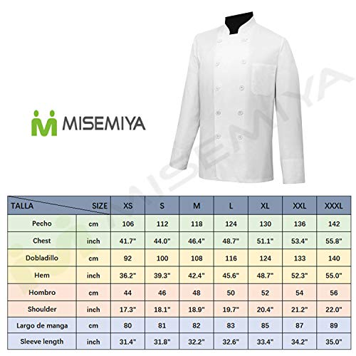 MISEMIYA Herren Chaquetas Chef Cocineros Mangas Largas Arbeits-T-Shirt, Blanco, L