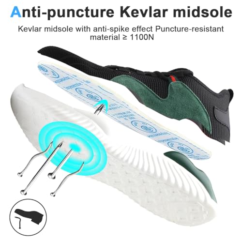 Mitudidi Sicherheitsschuhe Herren Arbeitsschuhe Damen Leicht Stahlkappenschuhe Atmungsaktiv rutschfest Sportlich Schutzschuhe Schwarz Grün 43 EU