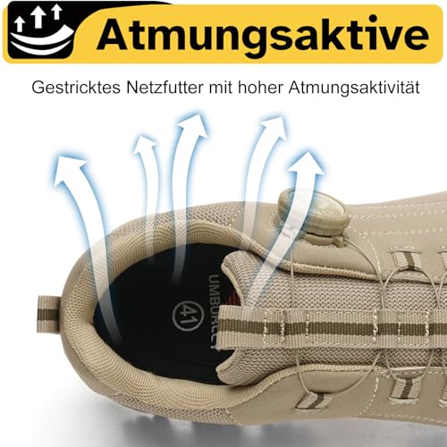 NACKINg Sicherheitsschuhe Arbeitsschuhe Herren Damen Wasserdicht Leicht Stahlkappenschuhe rutschfeste Arbeitsturnschuhe Stahlkappe Schutzschuhe mit Drehverschluss, Braun, EU 43