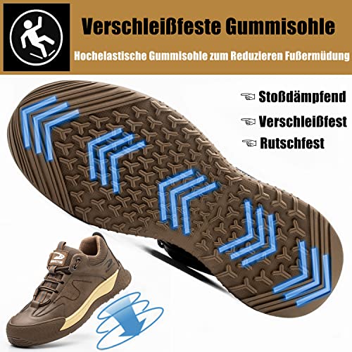 NACKINg Sicherheitsschuhe Herren Leicht Wasserdicht Kunststoffkappe Arbeitsschuhe Damen rutschfest Metallfrei Schutzschuhe, Braun, EU 43