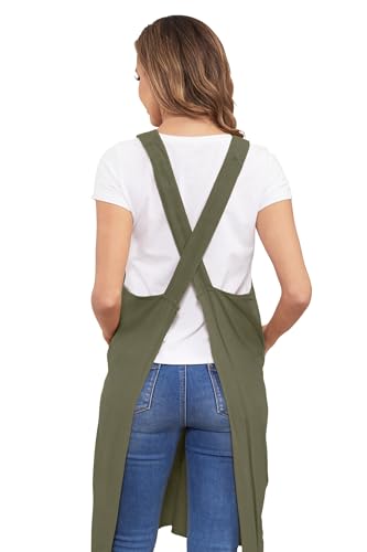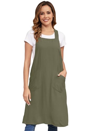 Nanxson Frauen Leinen Schürze Küchenschürze Kreuz Rücken Vintage Kochenschürze mit 2 Taschen für Backen Gartenarbeit Kochen