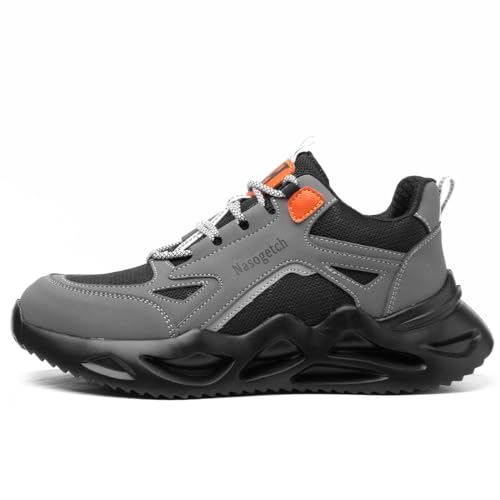 Nasogetch Sicherheitsschuhe Turnschuhe mit Stahlkappe für Herren Damen Arbeitsschuhe, Blaugrau 770, 47 EU