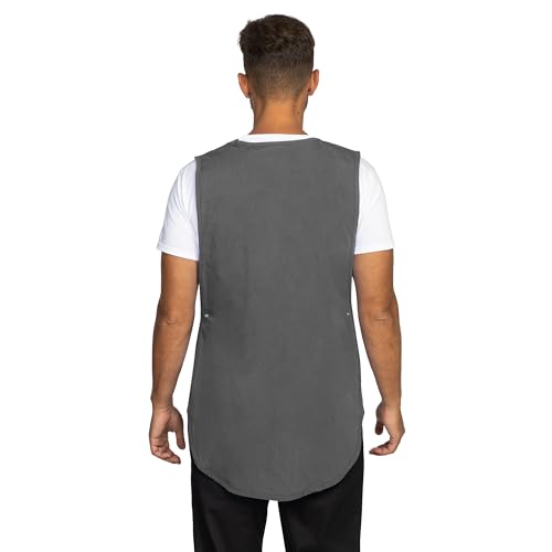 PALLTEX Ampato Überwurfschürze Damen Herren – Kittelschürze mit Taschen, verstellbar, Berufsschürze für Arbeit, Gastronomie, Reinigung, Friseur & Kosmetik, Größen S/M, L/XL, 2XL (Dunkelgrau, S/M)