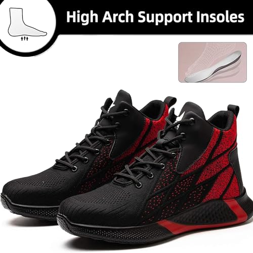 PAQOZKC Sicherheitsstiefel Leicht Herren Damen Arbeitsschuhe Hoch Stahlkappe Atmungsaktiv Sicherheitsschuhe rutschfest Stahlkappenschuhe 8081/Rot 45