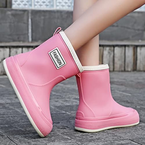 Regenstiefel Damen,Wasserdicht Halbhoch Gummistiefel,Mode Bequeme Schlupfschuhe,Weichen Sohle Gartenschuhe,Rutschfester Abriebfest Arbeitsschuhe,Warm Verdickte Regenschuhe,Outdoor Angelstiefel