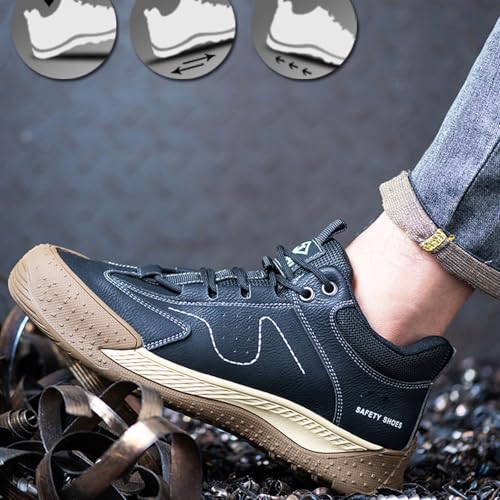 rutschfeste Schuhe mit Stahlkappe mit Rutschfester Außensohle, Unzerstörbare Stiefel mit Stahlkappe für Männer, Sneaker mit Stahlkappe für Frauen Durchstichsicher Kollisionssicher(Black,43 EU)