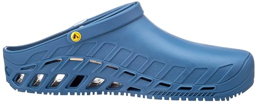 Die Scholl Clog Evo – professionelle Sanitär-Clogs für Damen und Herren verbinden Ultraleichtheit mit höchstem Tragekomfort. Ideal für lange Stehphasen im Sanitär- oder Gesundheitsbereich, bieten sie eine rutschfeste Sohle, eine herausnehmbare Memory-Cushion-Einlegesohle und einen drehbaren Riemen für flexible Anpassung. Das perforierte Obermaterial sorgt für gute Atmungsaktivität und trägt zu einem kühlen Fußklima bei, damit Sie auch nach einem langen Arbeitstag entspannt weiterarbeiten können. Die elektrostatische Entladestelle reduziert das Risiko von Beschädigungen elektronischer Geräte am Arbeitsplatz und erhöht die Sicherheit während Ihrer Schicht. Dank der robusten Verarbeitung sind Reinigung und Hygiene im Vordergrund: Der Sockel inklusive Innensohle ist autoklavierbar und maschinenwaschbar, sodass hygienische Standards problemlos erfüllt werden. Ob als komfortabler Allrounder in der Küche, im Wellnessbereich oder im Reinigungsdienst – der Clog Evo bietet zuverlässigen Halt, Stabilität und Schutz bei Flüssigkeitsverlust, ohne die Bewegungsfreiheit einzuschränken.