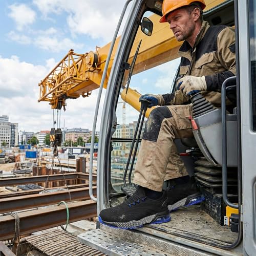 Die SPIEZ Arbeitsschuhe für Herren und Damen kombinieren Schutz, Leichtigkeit und Tragekomfort für den Arbeitsalltag. Erfüllten die Norm EN ISO 20345:2022, sind sie als Sicherheitsschuhe ohne Stahlkappe konzipiert – flexibel, angenehm zu tragen und besonders leicht. Die Schlupf-Schuhe ermöglichen ein schnelles An- und Ausziehen, während die Schnürsenkel eine individuelle Anpassung der Spannweite bieten. Mit rund 350 g pro Schuh sind sie deutlich leichter als herkömmliche Stahlkappenschuhe und schonen dadurch Energie sowie Bewegungsfreiheit. Die Phylon-Gummisohle sorgt für hervorragende Dämpfung, griffige Traktion und eine hohe Rutschfestigkeit – ideal beim Gehen, Laufen, Treppensteigen oder Arbeiten in Stoß- und Hebelumgebungen. Zusätzlich schützt eine durchstichfeste KEVLAR-Zwischensohle vor Eisenspänen, Nägeln, Schrauben und Glassplittern und macht die Schuhe robust gegen anspruchsvolle Einsätze in Lagerhallen, Fabriken, Produktionsstätten oder Baustellen. Dank des atmungsaktiven, fliegenden Webmaterials bleibt der Fuß auch lange Zeit kühl und trocken, da Schweiß verdunstet und Wärme entweicht. Diese Eigenschaften unterstützen Konzentration, Effizienz und Wohlbefinden während des Arbeitstags – ohne Kompromisse bei Sicherheit oder Komfort.