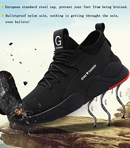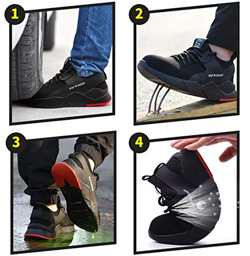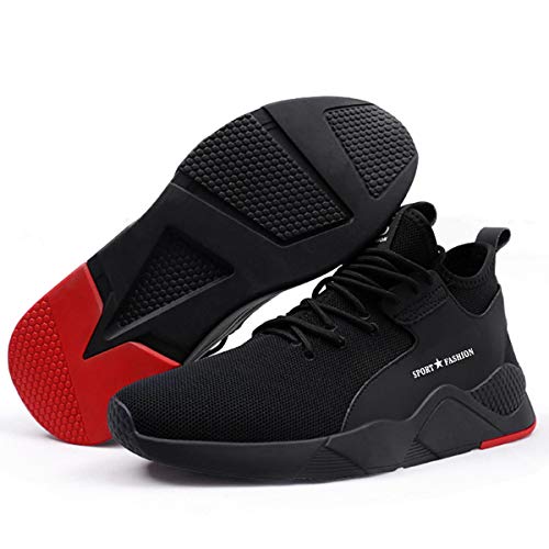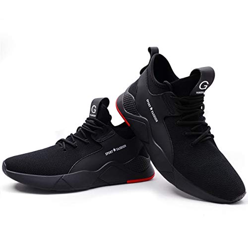 SROTER Arbeitsschuhe Herren Damen Stahlkappe Sicherheitsschuhe Leicht Sportlich Wanderhalbschuhe Atmungsaktiv Schutzschuhe Turnschuhe Schwarz 36 EU