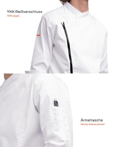 strongAnt Herren Kochjacke 3/4 kurzarm mit Reißverschluss Stretch Professionelle Kochuniform – Weiß, Größe: S