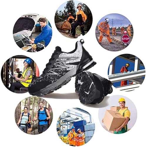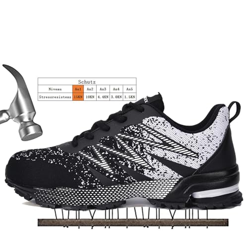 SUADEX Sicherheitsschuhe Arbeitsschuhe Herren Damen Leicht Atmungsaktiv Arbeitsschutzschuhe Stahlkappenschuhe mit Stahlkappe Schwarz 46 EU