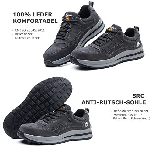 TAERGU S3 Sicherheitsschuhe Herren-Leder S1 Arbeitsschuhe SBP Leicht Stahlkappenschuhe Safety Shoes,922,Schwarz,EU40
