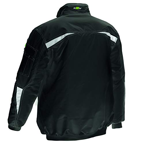 Die teXXor 4188-M Pilotenjacke Fjord in Schwarz vereint Witterungsfestigkeit, Tragekomfort und professionelles Auftreten – ideal für Arbeitssituationen, in denen Zuverlässigkeit gefragt ist. Der wasserdichte Blouson im klassischen Pilotenjacken-Stil schützt zuverlässig vor Regen und Wind, damit Sie sich auch außerhalb der Werkstatt trocken und sicher fühlen. Gefertigt aus abriebfestem Oxford-Gewebe sorgt die Jacke für lange Haltbarkeit im Arbeitsalltag. Reflektierende Einsätze an Front, Rücken und Ärmeln erhöhen die Sichtbarkeit bei schlechten Lichtverhältnissen und tragen so zu mehr Sicherheit bei. Das wärmende Steppfutter bietet angenehme Wärme auch bei kühleren Temperaturen und verfügt über einen Service-Reißverschluss, der eine individuelle Bedruckung oder Bestickung ermöglicht – ideal für Firmenaufdrucke oder Mitarbeitenden-Individualisierung. Die Jacke erfüllt damit alle Anforderungen eines praktischen Einsatzbegleiters: wasserdicht, robust, komfortabel und anpassbar.