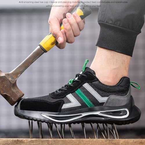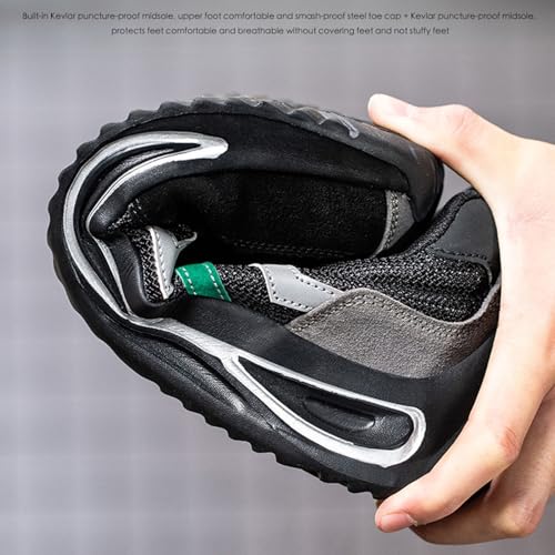 Nasogetch Sicherheitsschuhe Turnschuhe mit Stahlkappe für Herren Damen Arbeitsschuhe, Schwarz 797, 47 EU