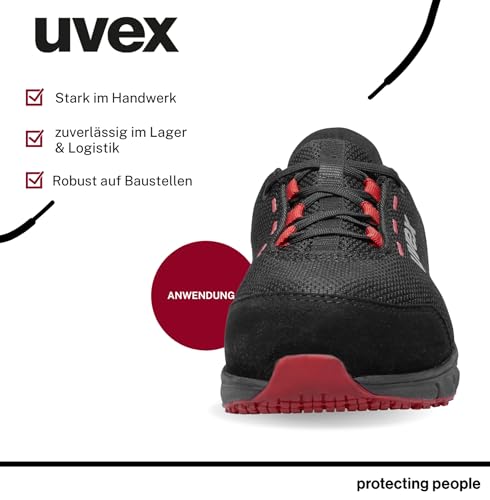 Uvex 1 Dynam-x S1 PL Sicherheitsschuh – metallfrei, besonders leicht & atmungsaktiv – Herren & Damen – vegan, ESD, rutschhemmend – schwarz/rot – Weite 11