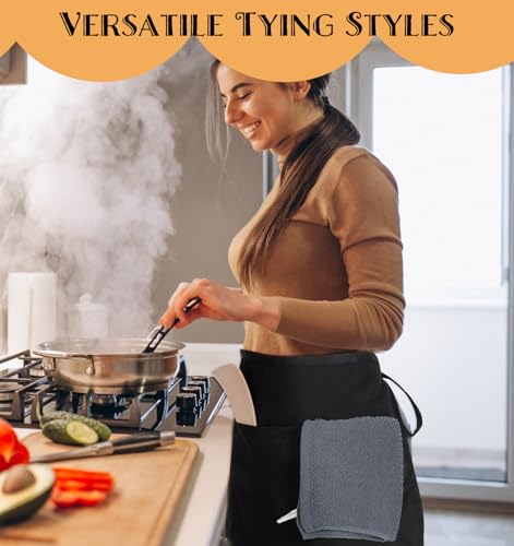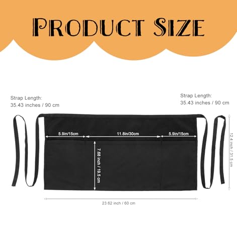 ValueBargain Kellnerschürze, Schürze Schwarz Professionelle Servierschürze mit 3 Taschen Elastische Bindegurte aus Polyester für Restaurant Café und Hotelwäsche(Schwarz)