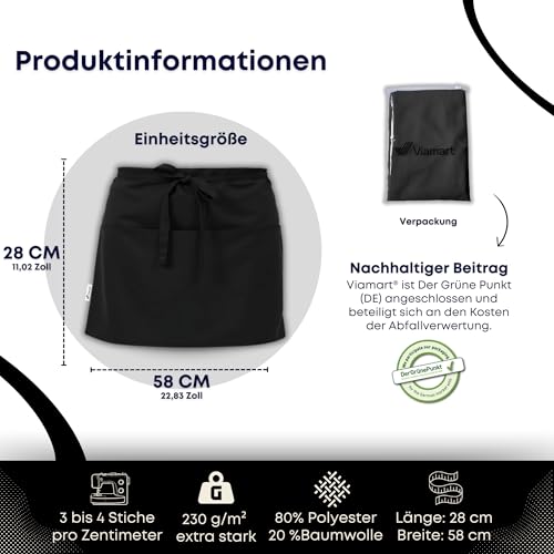 Viamart® Professionelle Gastronomie Schürze – kurze, hüftnahe Unisex-Schürze für Service, Kellner:innen und Küche. Pflegeleicht, robust und professionell.