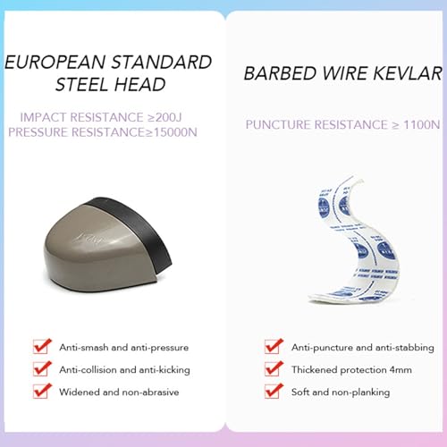 WaKsazlz Sicherheitsschuhe – Leichte, sportliche Arbeitsschuhe für Herren und Damen, die Sicherheit, Komfort und Vielseitigkeit verbinden. Der Schuh bietet eine verlässliche Anti-Rutsch-Leistung dank eines Gummipatches an der Sohle, der festen Grip auch auf nassen oder unebenen Untergründen gewährleistet. Die verbreiterte Stahlkappe nach europäischem Standard sorgt für hohen Zehenschutz und ausreichend Platz im Vorfuß, damit sich Ihre Füße auch über längere Tragezeiten wohlfühlen. Die Innenschicht der Sohle enthält Kevlar, das Durchtrittschutz bietet, damit Nägeln, Stäben oder anderen scharfen Gegenständen nichts anhaben kann. Für ein angenehmes Fußklima sorgt das feuchtigkeitstransportierende Mesh-Futter, das Schweiß effizient nach außen leitet und Geruchsbildung reduziert. Vielseitig einsetzbar – vom Fahrer- und Lagerbereich über Logistik, Automechanik, Bau, Schreinerarbeiten bis hin zu Gartenarbeiten. Zudem eignen sich die Schuhe dank sportlichem Design auch für Freizeitaktivitäten wie Spaziergänge, Shopping oder Events.