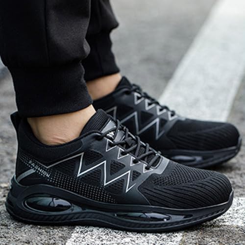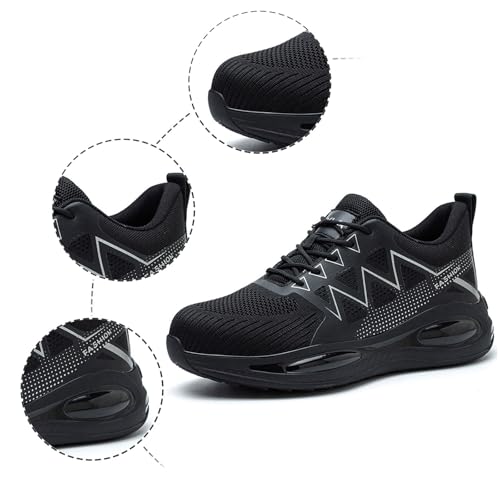 Working Shoes for Men, Sicherheitsschuhe Herren, Arbeitsschuhe Stahlkappenschuhe Safety Shoes ESD Arbeits- & Berufsschuhe Breite Füße Work Schuhe Plateau Arbeitsschutzschuhe Mit Stahlkappe Black 42
