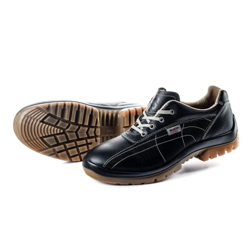 Erleben Sie Sicherheit und Komfort in einem Arbeitsschuh, der den Anforderungen anspruchsvoller Berufseinsätze gerecht wird. Der WÜRTH MODYF Laguna S3 SRC Sicherheitsschuh in Schwarz vereint robuste Schutzfunktionen mit langlebigem Tragespaß – ideal für Herren und Damen, die Wert auf Zuverlässigkeit legen. Die bewährte Stahlkappen-Konstruktion bietet zuverlässigen Zehenschutz, während der Durchtrittschutz den Fuß auch auf punktuell härteren Untergründen schützt. Eine rutschfeste PU-Laufsohle sorgt auch bei nassen Böden für sicheren Halt und verbessert die Standfestigkeit im Arbeitsalltag. Wasserabweisendes Obermaterial sorgt dafür, dass Feuchtigkeit nicht zum Problem wird, sodass Sie Ihre Aufgaben auch bei wechselnden Witterungsbedingungen komfortabel erledigen können. Die glatte Glattleder-Optik überzeugt zudem optisch und ist pflegeleichter als herkömmliche Lederarten. Mit dem Laguna S3 SRC setzen Sie auf einen bewährten Klassiker von Würth MODYF, der Funktionalität, Flexibilität und Langlebigkeit miteinander vereint – konzipiert für lange Einsatzzeiten in Industrie, Handwerk und Logistik.