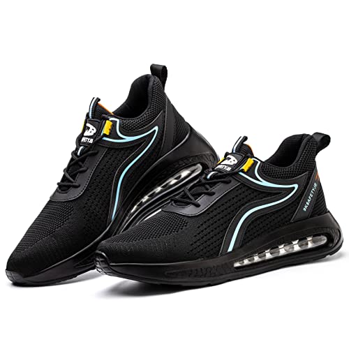 XUNRUO Sicherheits-Arbeitsschuhe für Herren und Damen, atmungsaktive Sicherheitsschuhe mit Stahlkappe, athletische Sneaker, leichte Konstruktion, Tischlerschuhe, schwarz 2, 12.5 Women/11 Men