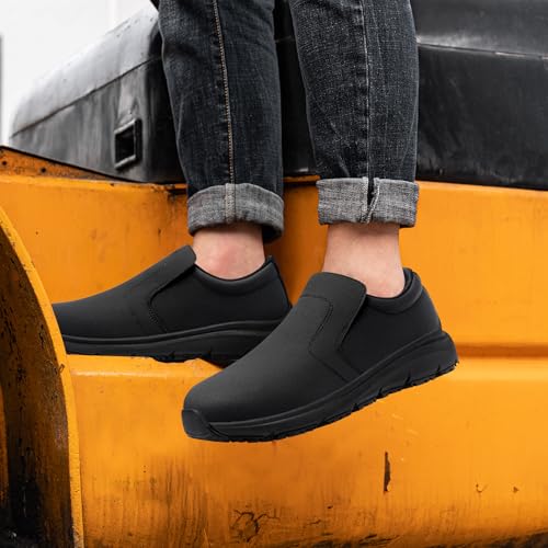 ZIGSAM Kochschuhe Herren rutschfest Damen Sicherheitsschuhe wasserdichte Arbeitsschuhe Küche Leicht SRC Bequemer Dämpfung Arbeitsschuh mit Stahlkappe(42, Schwarz)